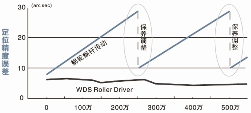 沃迪士機(jī)械(中國)有限公司生產(chǎn)的數(shù)控轉(zhuǎn)臺(tái)采用凸輪滾子結(jié)構(gòu),具有零間隙、高精度、高效率,維護(hù)成本低等優(yōu)點(diǎn),市面上普通的蝸輪蝸桿結(jié)構(gòu)轉(zhuǎn)臺(tái)渦輪采用磷青銅,使用大概半年以后出現(xiàn)背隙需要專業(yè)技術(shù)人員對(duì)轉(zhuǎn)臺(tái)重新調(diào)整恢復(fù)精度,而沃迪士轉(zhuǎn)臺(tái)采用凸輪滾子結(jié)構(gòu),凸輪滾子結(jié)構(gòu)是滾動(dòng)摩擦,入力軸和出力軸硬度達(dá)到HRC60度,可使用500萬轉(zhuǎn)精度無變化(如下圖所示:)。所以不需要用戶調(diào)整轉(zhuǎn)臺(tái)背隙,日常維護(hù)主要是潤滑油的檢查和更換。